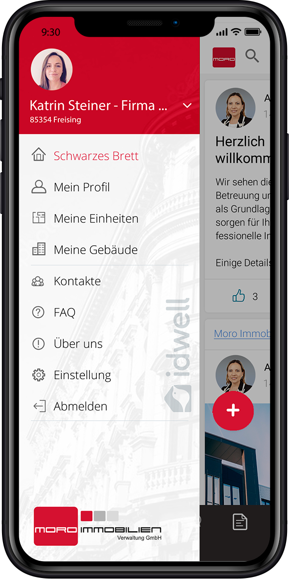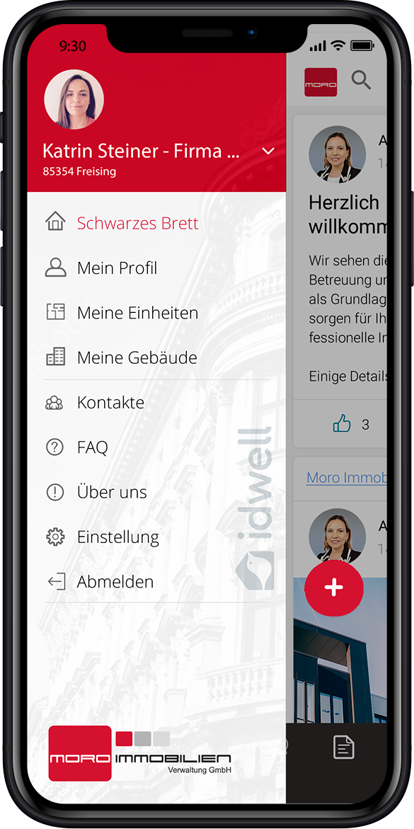 Ihre Mobilität und Zeitersparnis stehen im Fokus. Informieren Sie sich zu jeder Zeit und an jedem Ort rund um Ihre Immobilie auf der Moro App powered by iDWELL.