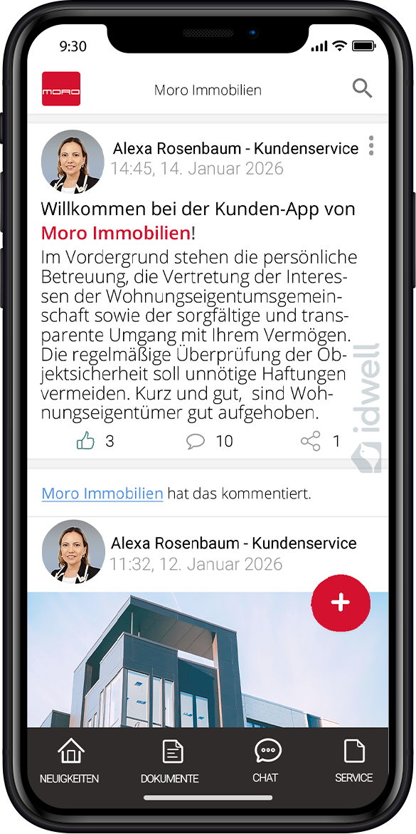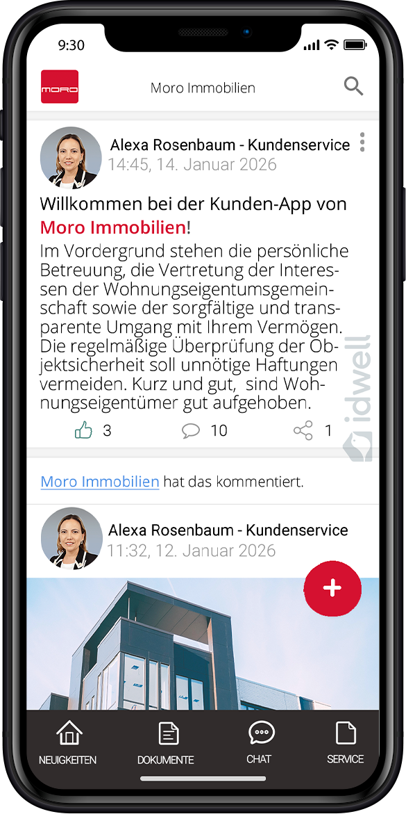 Der Aufzug ist defekt, das Licht im Treppenhaus brennt nicht mehr oder Sie haben eine Frage zur Abrechnung? Dann haben Sie als Mieter oder Eigentümer ab sofort die Möglichkeit, Ihre Anliegen ganz einfach per Smartphone über die Moro App powered by iDWELL zu melden - inklusive Fotoanhang! Wir halten Sie über den Bearbeitungsstatus Ihrer Anfrage auf dem Laufenden.